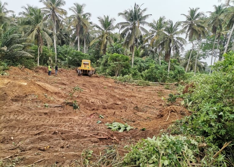 Décapage et terrassement d’un site de 20 Ha à Bonoua (500 mètres du lycée Moderne), 30 lots en vente (15000 FCFA le mètre carré)