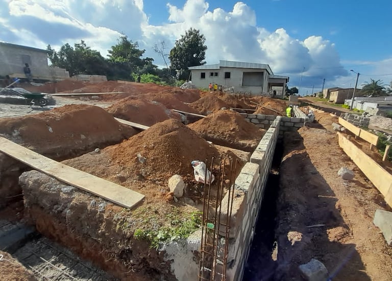 SBS est en charge de la construction d'un immeuble R+3 destiné à la Diaspora Canadienne, situé en face du Palais de Justice de Bingerville. Ce bâtiment à usage mixte comprendra des appartements résidentiels modernes ainsi que des bureaux, offrant une architecture contemporaine et des finitions haut de gamme. Les travaux incluent le gros œuvre, les aménagements intérieurs, ainsi que l’installation des équipements électriques, sanitaires et de sécurité. Ce projet vise à fournir un cadre de vie et de travail confortable, dans un emplacement stratégique au cœur de Bingerville.